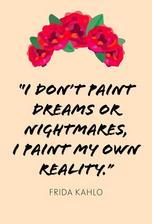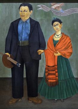 She was born July 6, 1907 in Coyoacán, Mexico City, Mexico. She lived during the Mexican Revolution and snuck out of church to walk in the gardens. (Not that I would ever do that!). At age 6, she got Polio. To help it heal, she took up boxing. Although it helped her foot and raised her spirits, she never fully recovered. Frida studied to be a doctor but unfortunately, she got severely injured in a bus accident. She could not be a doctor, due to her injury. The pain inspired her to paint the art we see today.* She married Diego Rivera, when he took her to America. She did not like it in America, but he would not take her back. They fought A LOT! She tried to get along with him, but he was not kind to her. She couldn't take it any more. They divorced. She was very sad, but she continued to do art.